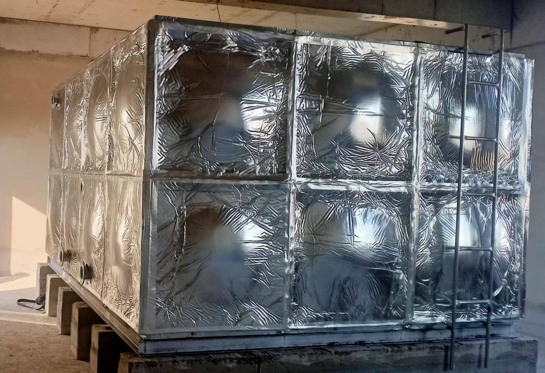 我公司承接的山東省濱州市無棣縣龍灣鎮(zhèn)醫(yī)院水箱項目已經(jīng)安裝試水完成,此次水箱用做消防儲水使用。裝配式鍍鋅鋼板水箱制造、安裝不受土建施工影響,不用焊接設(shè)備,水箱表面采用熱鋅防腐處理,使水質(zhì)不受二次污染,并符合建筑產(chǎn)品標(biāo)準(zhǔn)化、系列化、工廠化要求。因其優(yōu)秀的抗氧化能力較不銹鋼價格低的性能的越來越多的應(yīng)用到實(shí)際生活中。